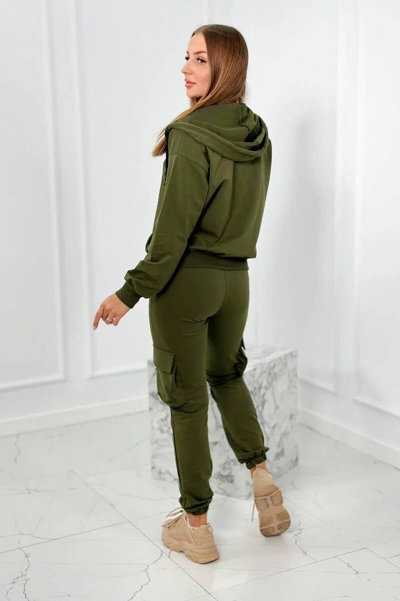 Set 3 v 1 mikina + top + kalhoty khaki