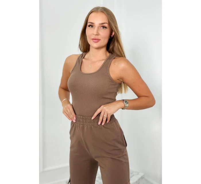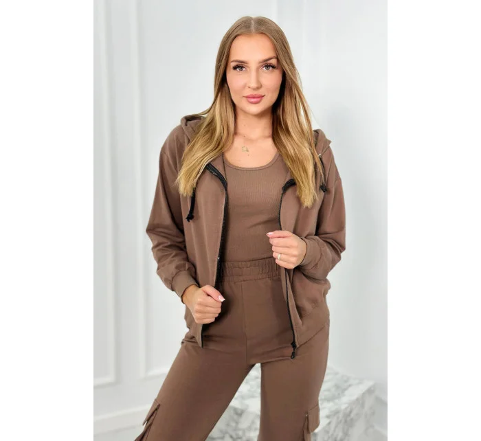 Set 3 v 1 mikina + top + kalhoty mocca