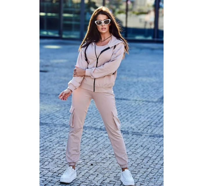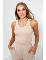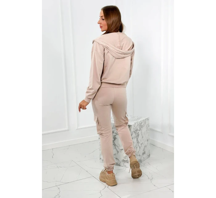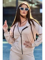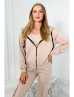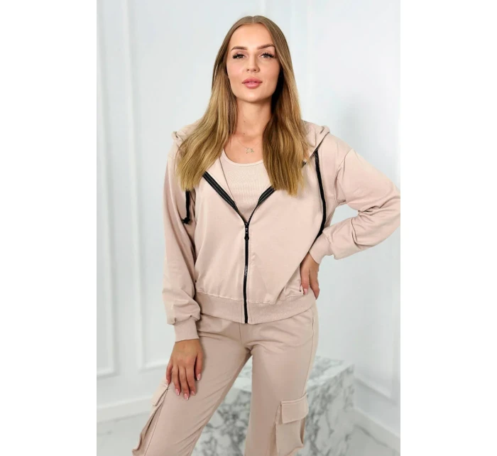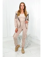 Set 3 v 1 mikina + top + kalhoty světle béžová