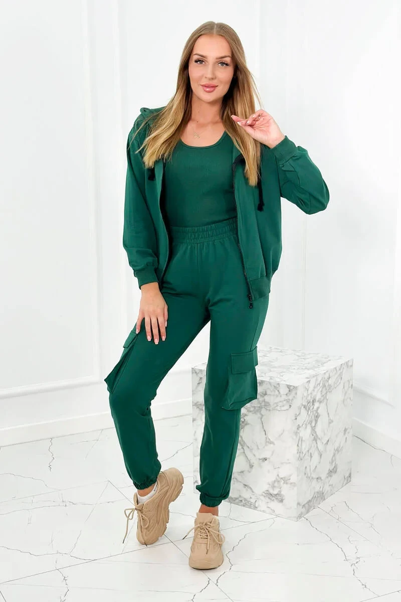Set 3 v 1 mikina + top + kalhoty zelený