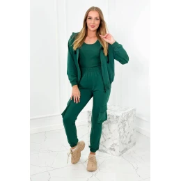 Turecký set 3 v 1 je mimořádně stylový a praktický set, který dokonale spojuje pohodlí s módou. Tento set, který se skládá z mikiny, žebrovaného topu a kalhot s kapsami, je snem každého, kdo hledá všestranné a atraktivní oblečení. Mikina je ústředním prvkem kompletu. Její střih a netradiční design vytváří jedinečný charakter, který lze přizpůsobit různým příležitostem. Žebrovaný top, který je dalším prvkem soupravy, dodává trochu sportovního charakteru. Zajímavé vzory proužků mu dodávají jedinečné kouzlo a vyčnívají z ostatních oděvů. Top lze nosit samostatně nebo jako vrstvu pod mikinu, což umožňuje vytvářet různé styly. Kalhoty s kapsami doplňují vzhled, dodávají praktičnost a funkčnost. Kapsy jsou ideální pro uložení drobností, jako jsou klíče nebo telefon. Pohodlný střih kalhot z nich dělá ideální volbu jak na každodenní procházky, tak na setkání s přáteli. Turecký set 3 v 1 je návrhem pro lidi, kteří si cení pohodlí a zároveň se nechtějí vzdát módního vzhledu. Tato sada dokonale vyhovuje současným módním trendům a umožňuje vám vytvořit originální styly pro každou příležitost. Velikost je univerzální a bude vhodná pro ženy velikosti S, M nebo L.