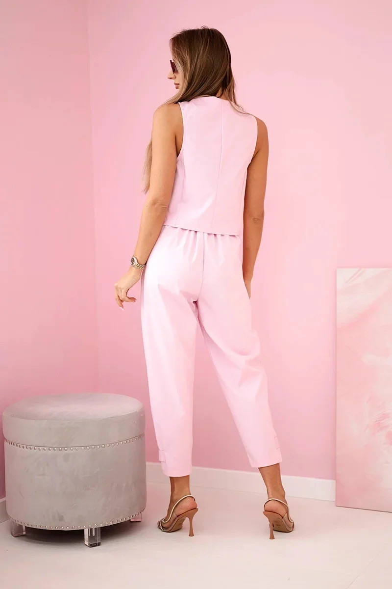Tato jedinečná souprava spojuje klasickou eleganci s módním minimalismem a vytváří tak dokonalý outfit pro každou příležitost. Vesta s precizním střihem jemně zvýrazňuje siluetu a dodává outfitu sofistikovaný vzhled, zatímco její univerzální design umožňuje nosit ji samostatně nebo v kombinaci s košilí či halenkou. Kalhoty doplňují soupravu a zajišťují pohodlné nošení a dokonalé přizpůsobení postavě. Díky pečlivému zpracování a kvalitním materiálům poskytuje tato souprava celodenní komfort a hodí se jak pro každodenní outfity, tak i pro elegantnější příležitosti. Vyberte si soupravu vesta + kalhoty a vytvořte stylový, moderní vzhled, který podtrhne vaši sebejistotu a vkus. Velikost je univerzální a odpovídá ženám nosícím velikosti S, M nebo L.