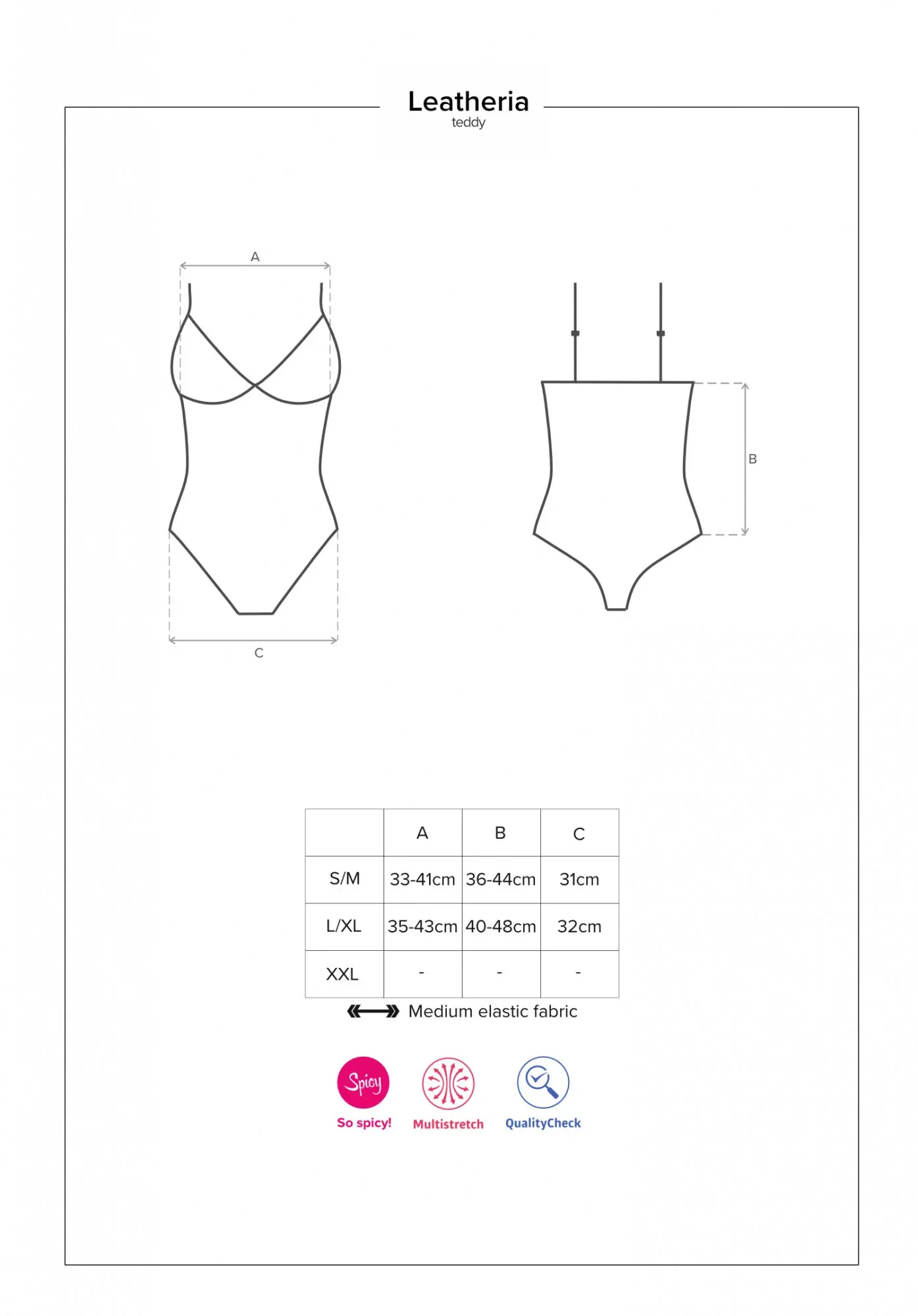 Produkt Sexy body Leatheria teddy - Obsessive prodáváme v těchto velikostech: L/XLa barvách černá5901688225363