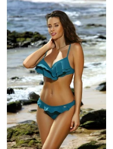 Model składa się z oversize’owej góry z długim rękawem oraz klasycznych spodni z szerokimi nogawkami. Ten komplet to doskonały wybór na nocny odpoczynek, ale także jako wygodna odzież domowa do noszenia na co dzień.