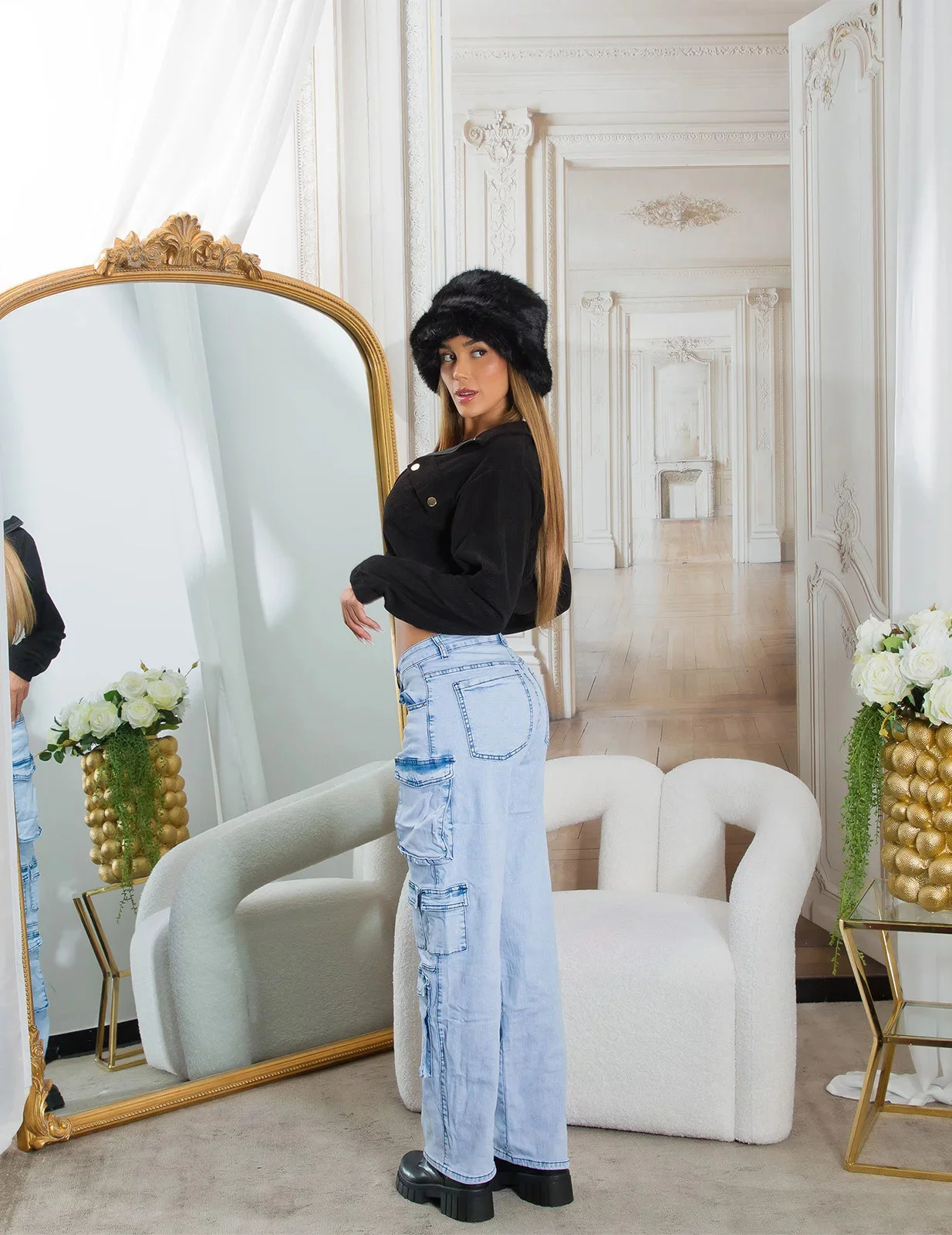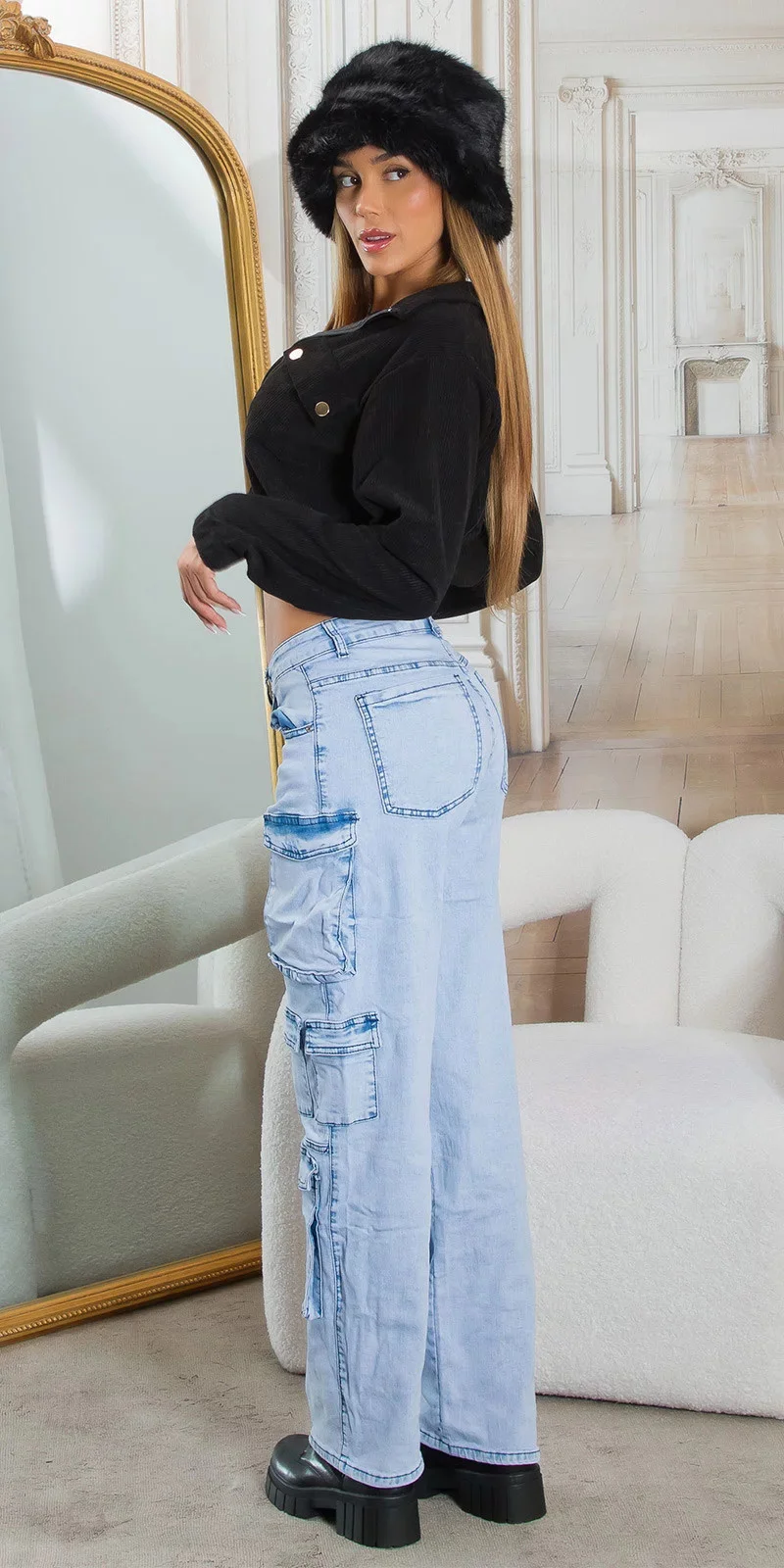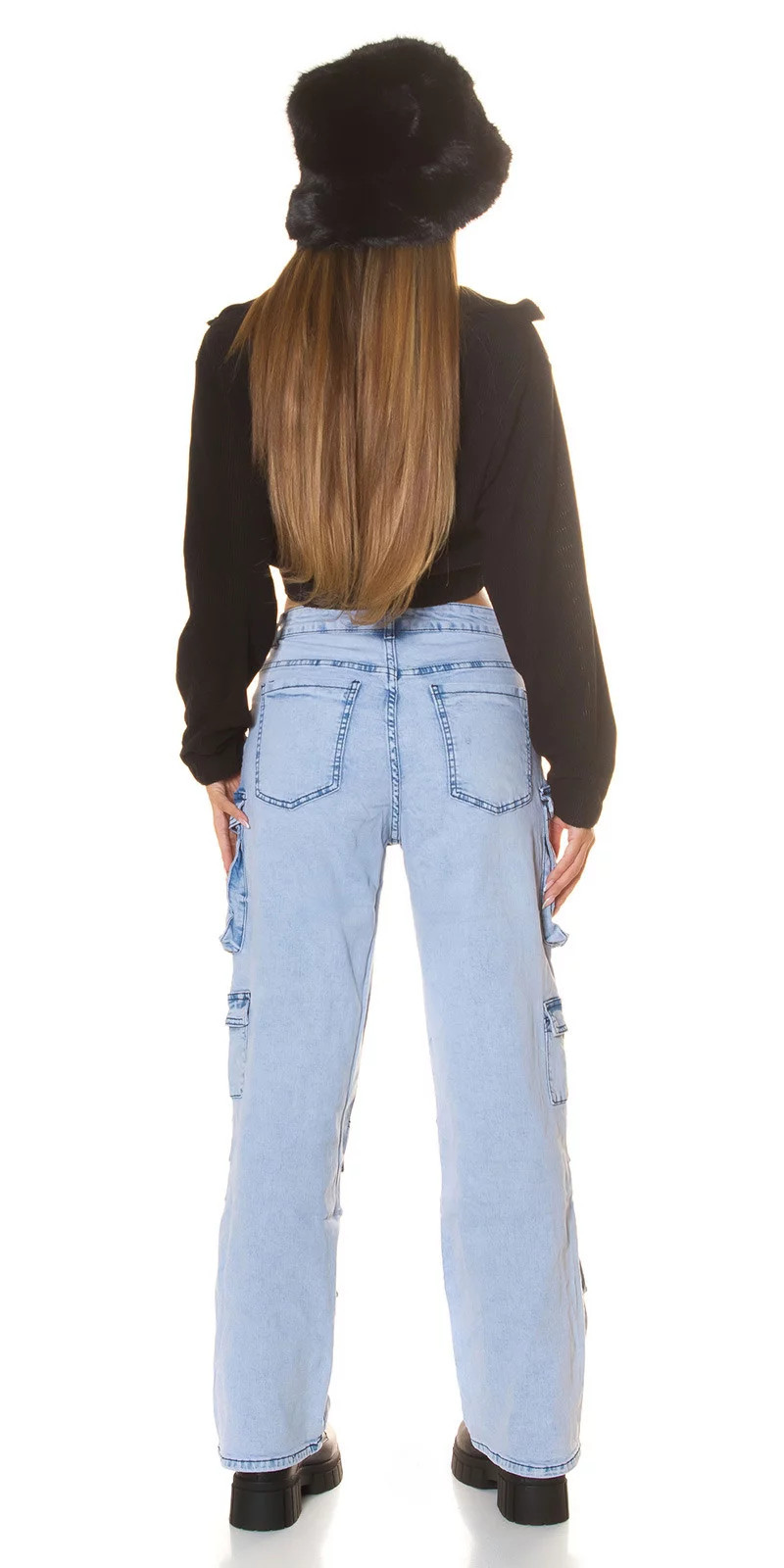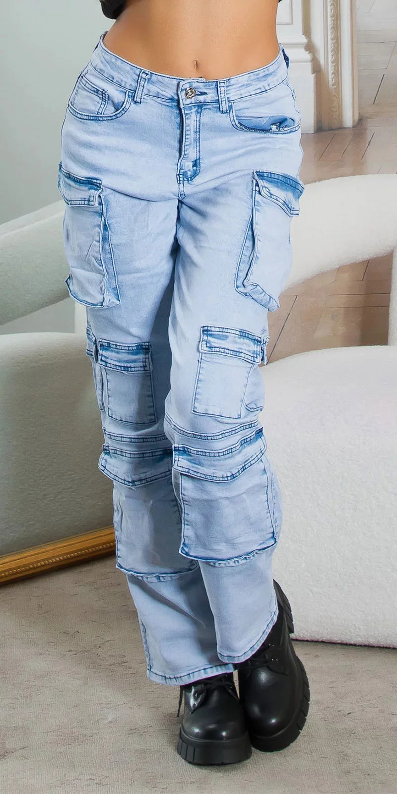 Dámské sexy džíny s množstvím kapes. Světle modrá jeans barva.