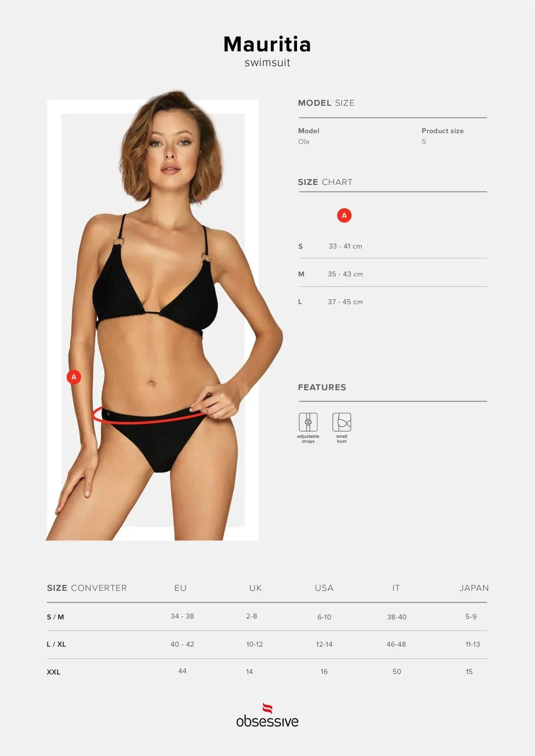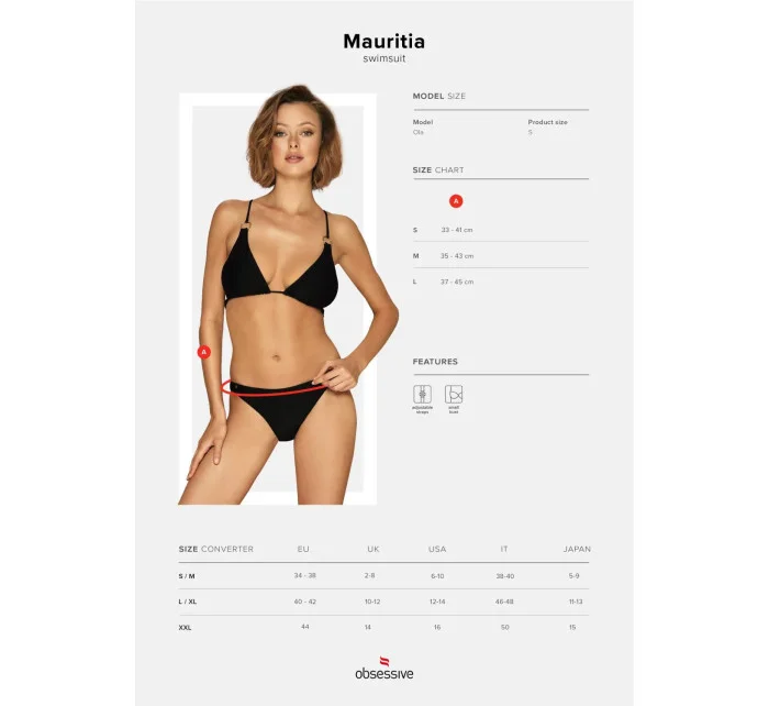 Produkt Sexy plavky Mauritia - Obsessive prodáváme v těchto velikostech: S, M, La barvách černá5901688230572, 5901688230589, 5901688230596