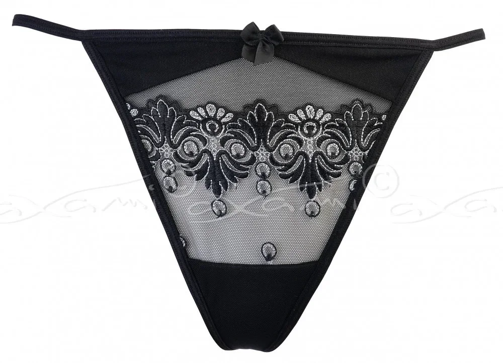 průhledná tanga Bell V-5138 ušitá z jemně zdobeného tylu okouzlí svou lehkostí a skvěle se kombinují se stejně éterickým podvazkovým pásem Bell V-5132.
