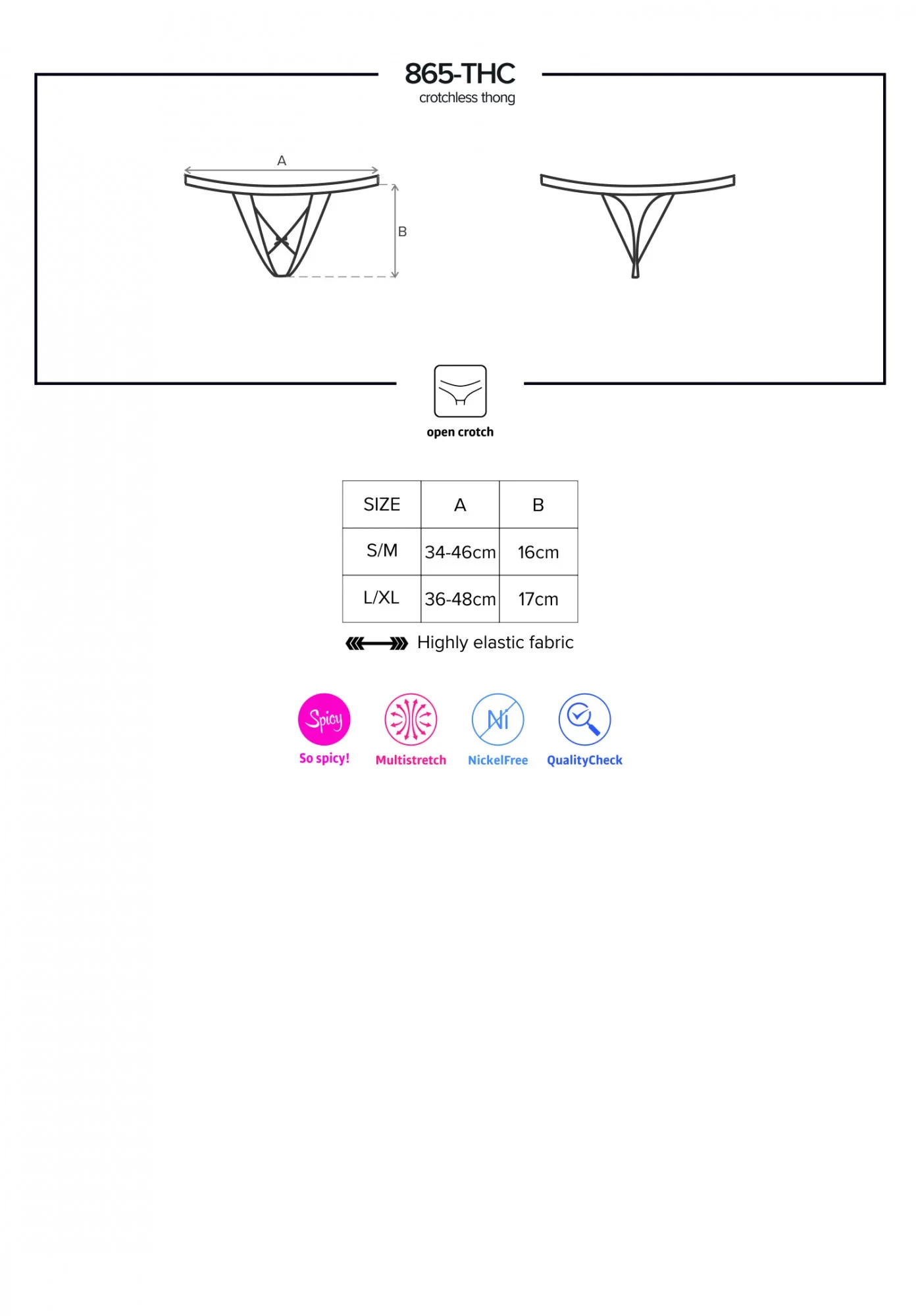 Produkt Sexy tanga otevřená 865 - THC - Obsessive prodáváme v těchto velikostech: L/XLa barvách černá5901688219409
