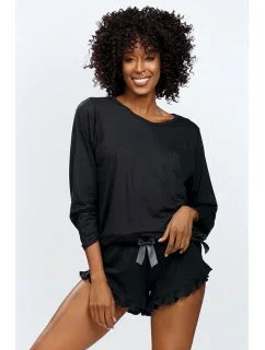Vzdušná černá noční košile typu negližé, pohodlně zapínaná vpředu. Hladké. Měkký, jemný a smyslný tyl, který okamžitě hýčká tělo a láká průhlednými detaily. Zpět s velkolepým rozdělením.