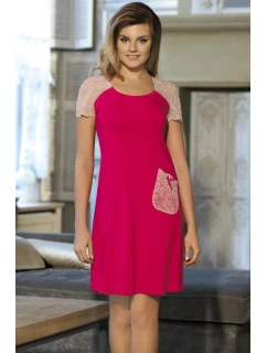Noční košile z viskózy a krajky s originálním střihem. Špičatý výstřih, krajkový vršek imitující bolerko, krajková záda. Navrženo a ušito v Polsku.
