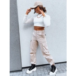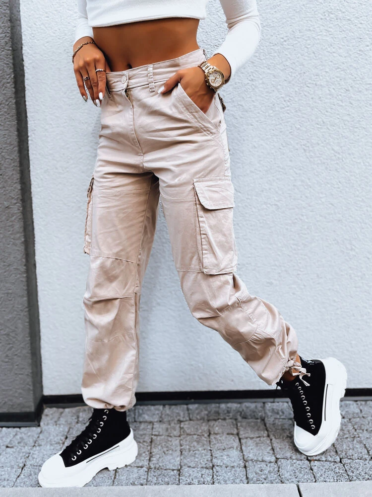 SHIMMERING dámské padákové kalhoty světle béžové FashionStreet UY1674