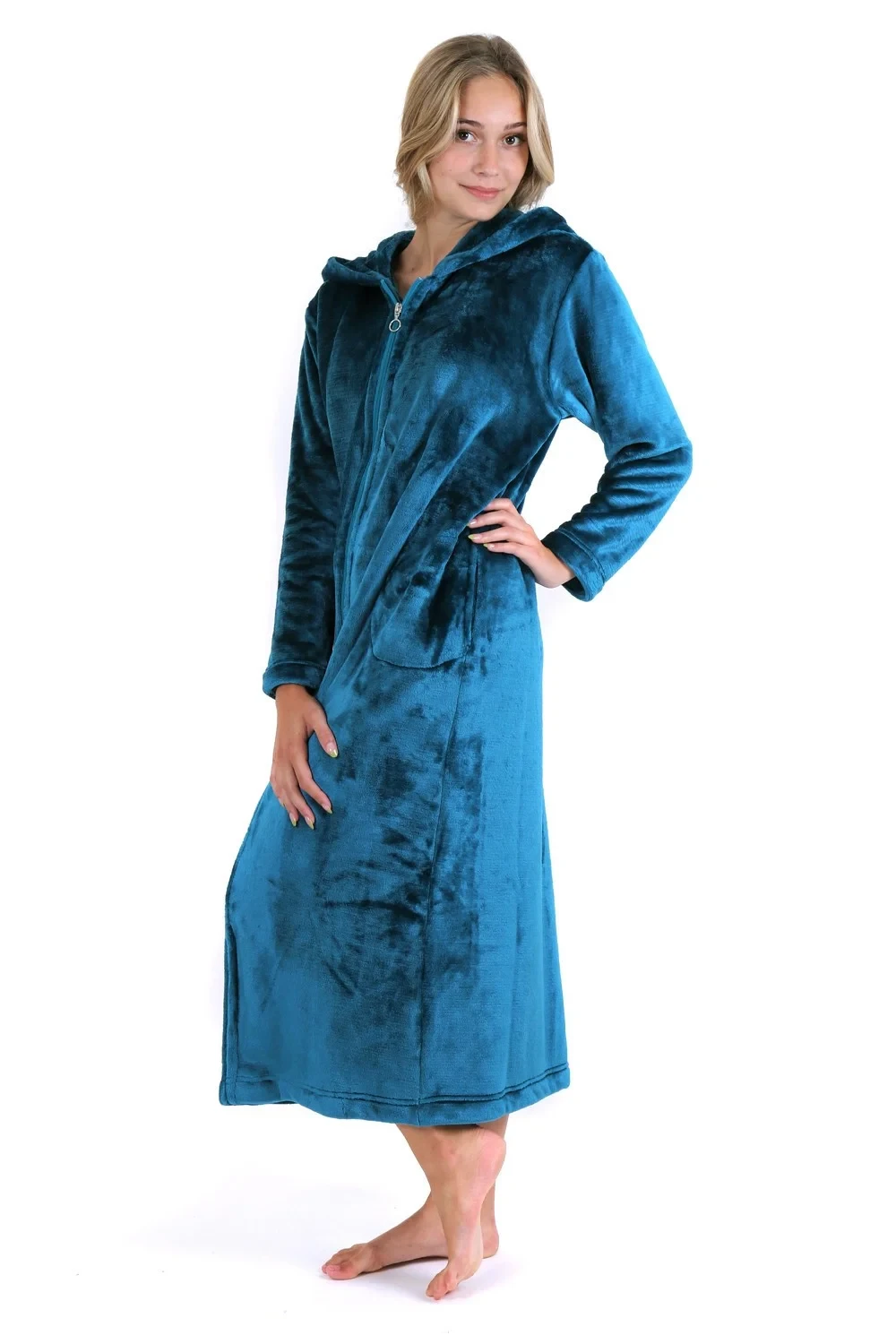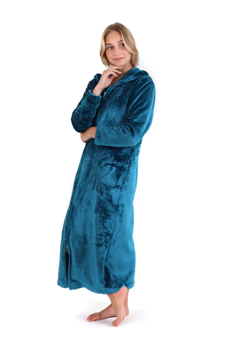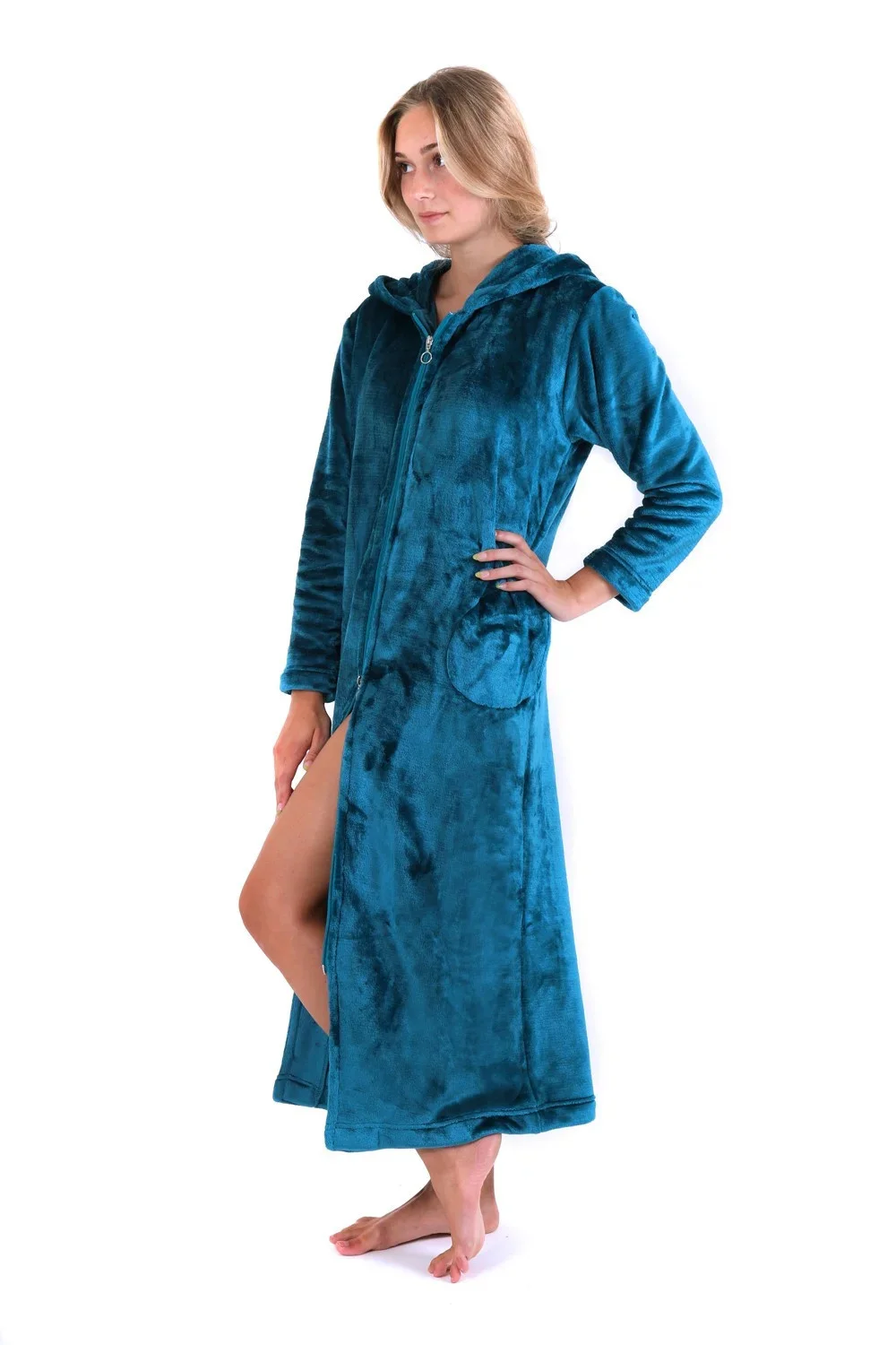 Dlouhý dámský župan Siena s kapucí na zip pro chvíle odpočinku a relaxace.