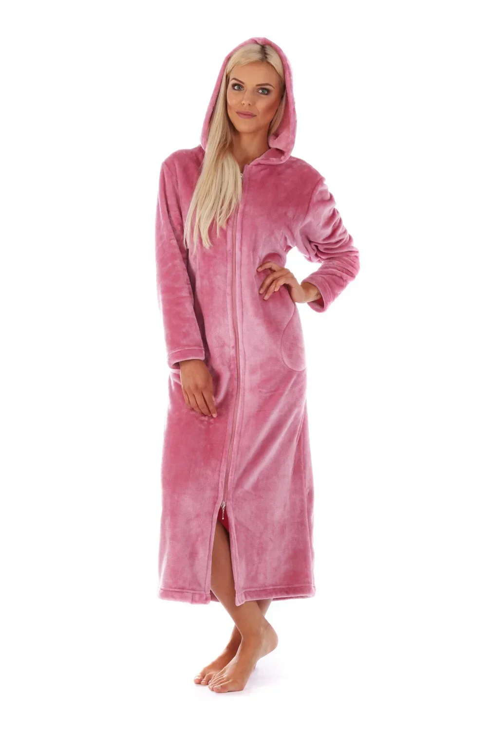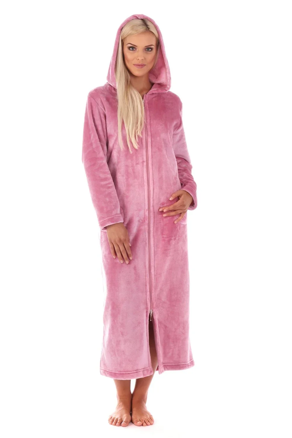 Dlouhý dámský župan Siena s kapucí na zip pro chvíle odpočinku a relaxace.