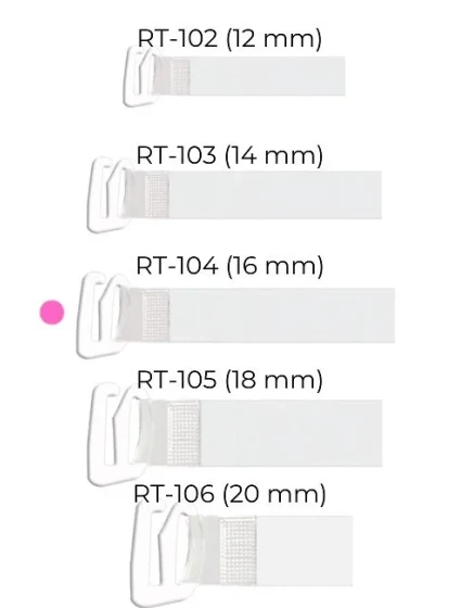 Průhledná silikonová ramínka 16 mm, neutrální k pokožce. Odolné na vysoké teploty, atmosferické vlivy či mechanická poškození. Ramínka mají zavené spoje.