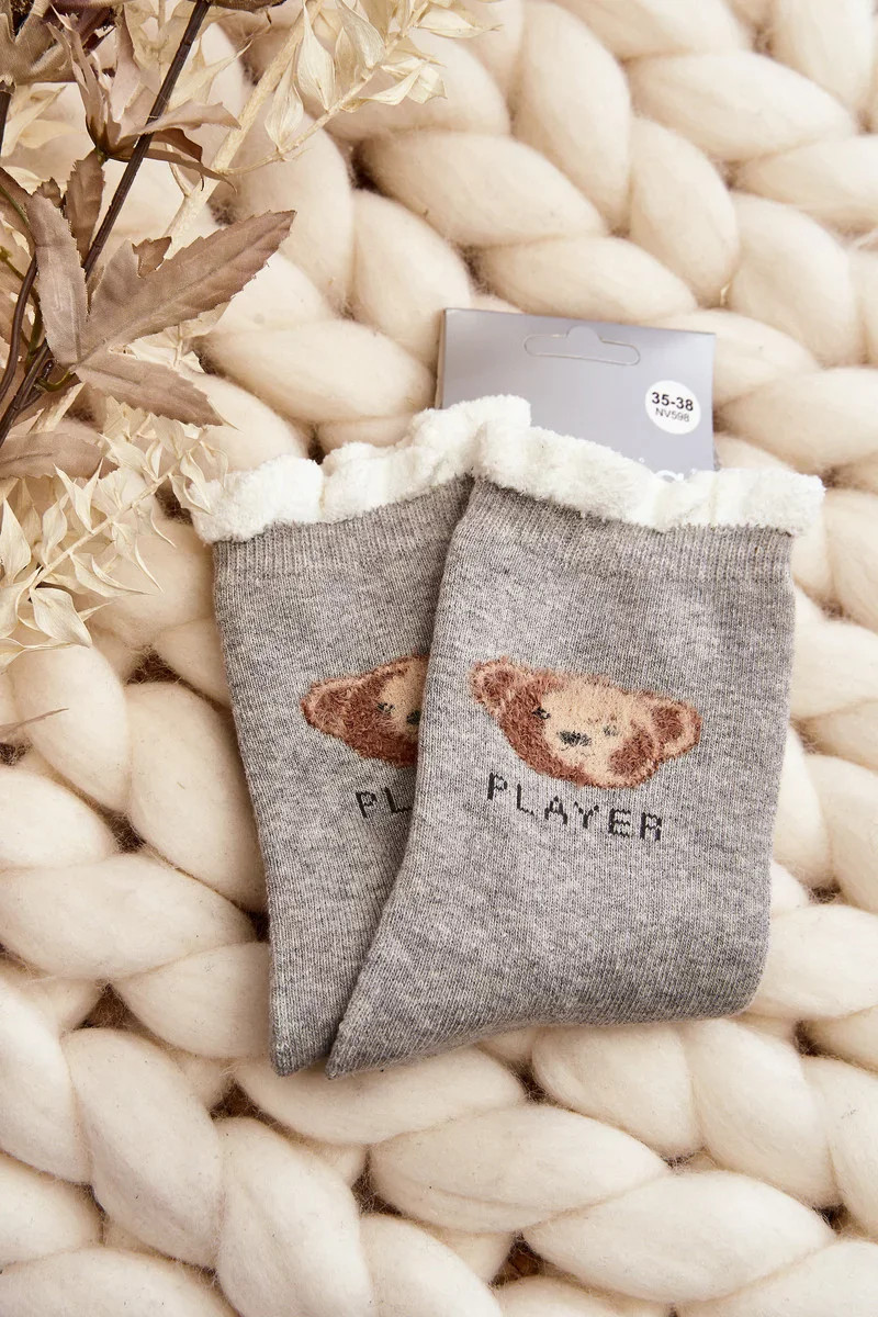 Silné bavlněné ponožky s medvídkem, světle šedé