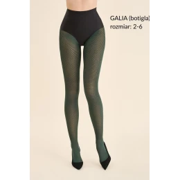 Přijměte jedinečnou eleganci s nádechem modernosti. Punčocháče Gabriella GALIA v odstínu lahvově zelené jsou návrhem pro ženy, které si cení stylu a pohodlí. Hustý geometrický vzor jemně zeštíhluje nohy a dodává stylingu módní charakter. Punčocháče jsou vyrobeny z elastické příze o tloušťce 40 den, ideálně se přizpůsobí siluetě a poskytují pohodlí po celý den. Jsou ideální volbou pro chladnější dny, do práce i na večerní vycházky.