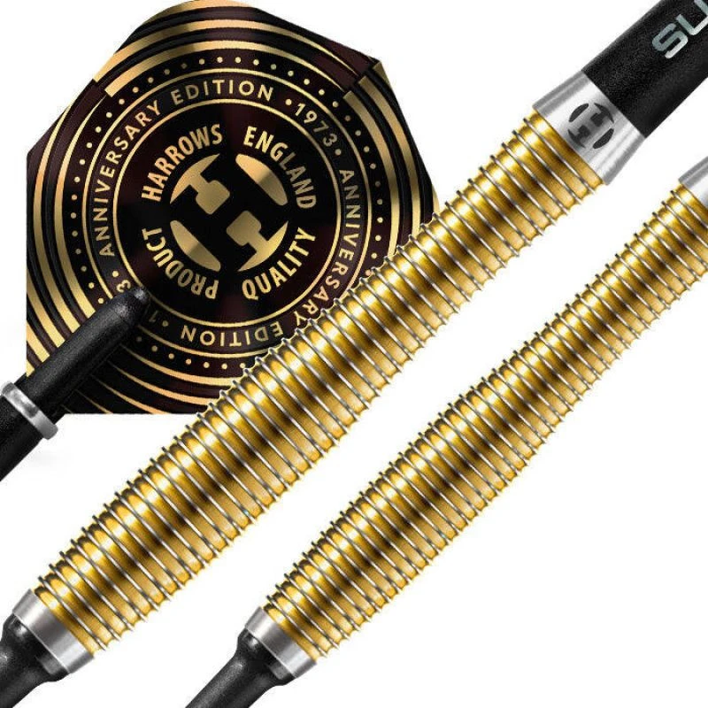 - Šipky jsou osazeny karbonovými letkami Midi Supergrip a novými šipkami Harrows Anniversary 100 micron.
