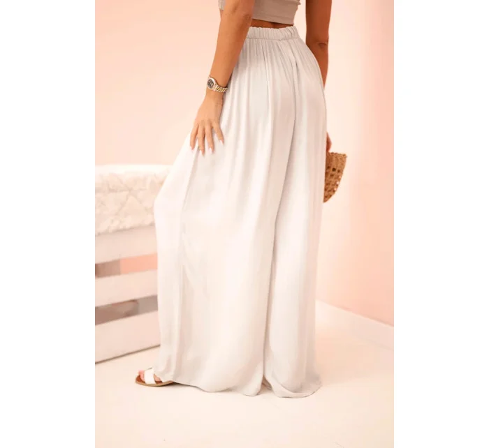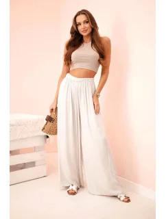 Široké dámské kalhoty s elastickým pasem béžový