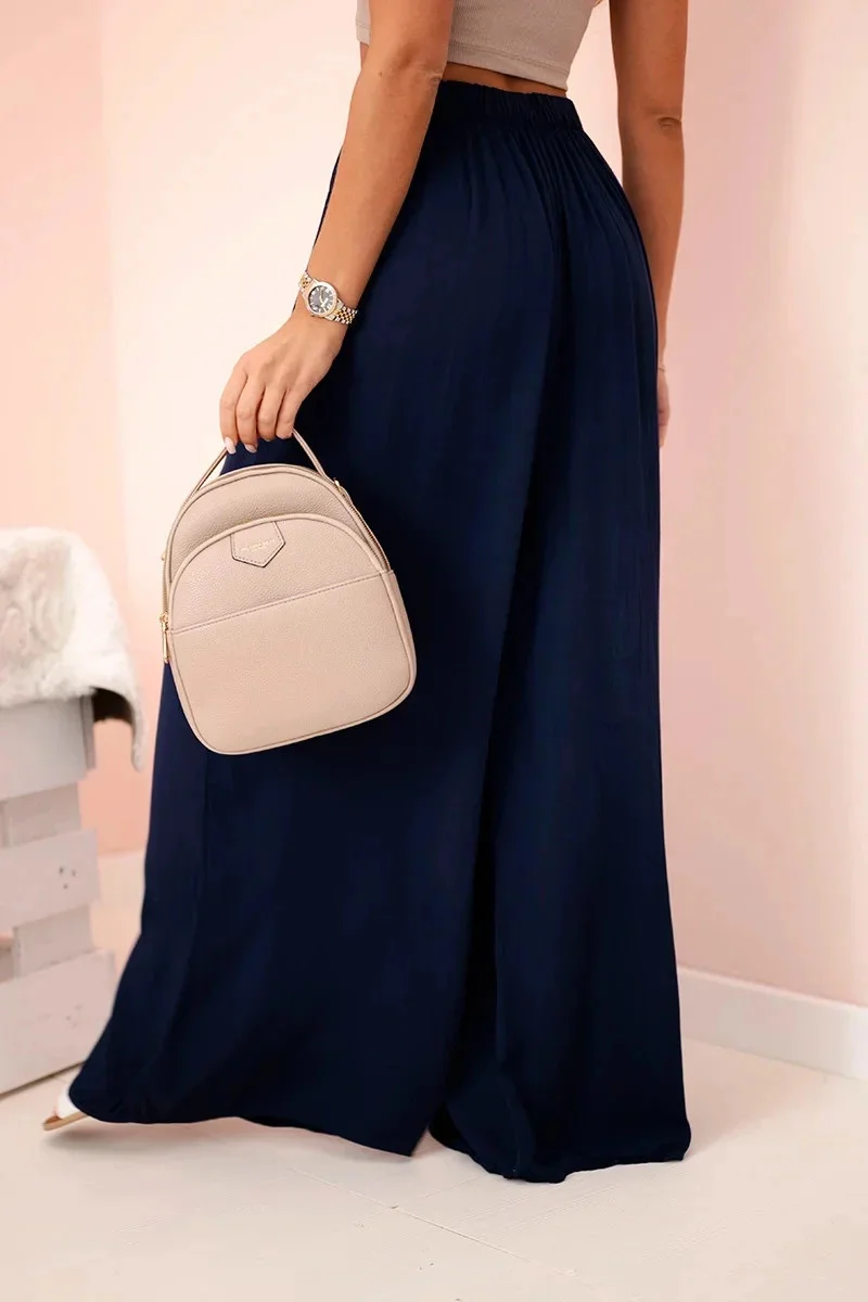 Široké dámské kalhoty s elastickým pasem námořnická modř
