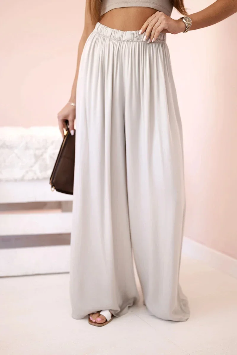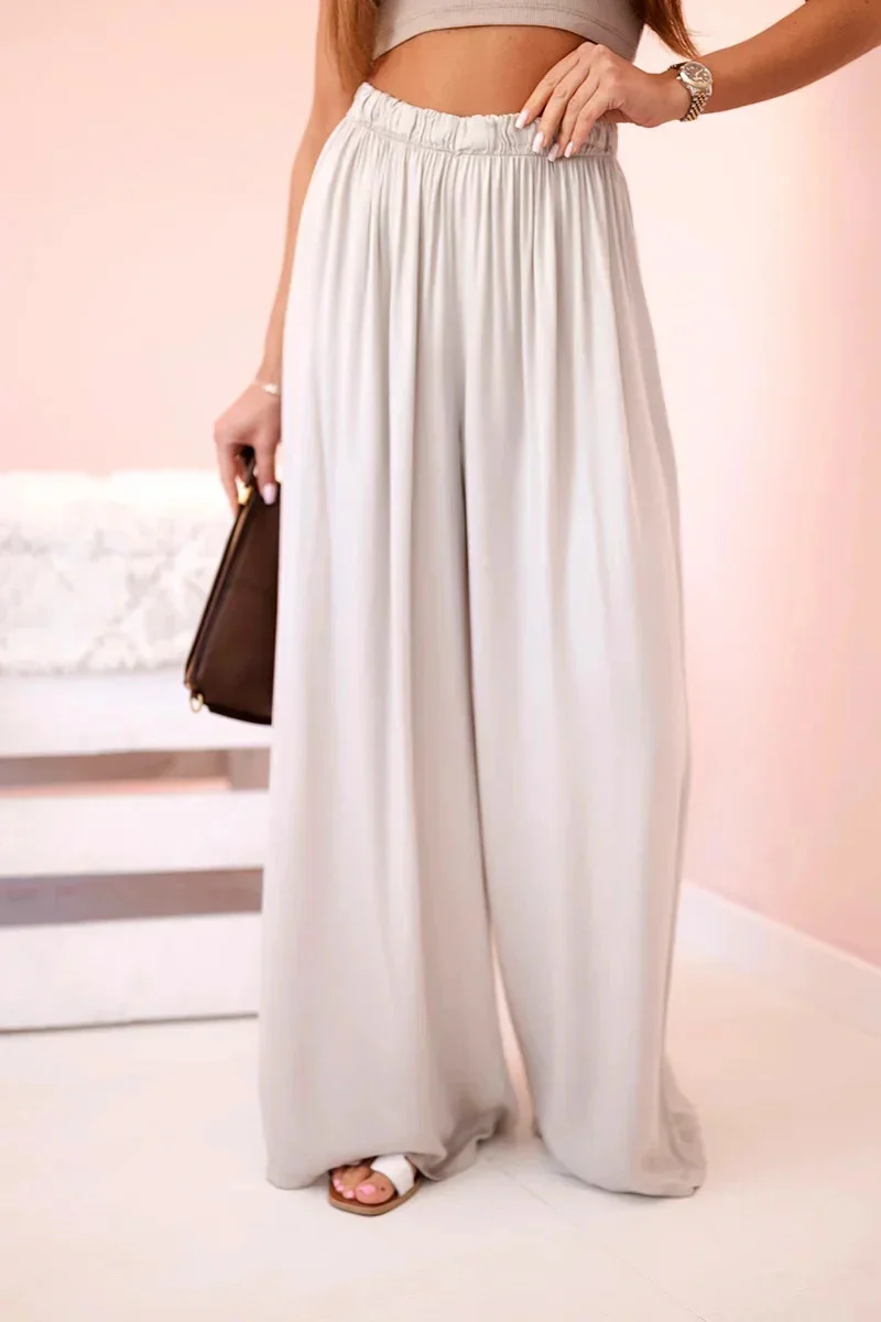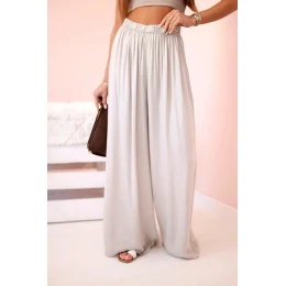 Široké dámské kalhoty z viskózy s elastickým pasem tmavě béžové