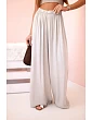 Tyto jedinečné dámské kalhoty kombinují pohodlí a styl. Jsou vyrobeny ze 100% viskózy, což je činí lehkými, vzdušnými a dokonale přizpůsobitelnými postavě. Široké nohavice dodávají elegantní, splývavý vzhled, který se hodí jak na každodenní nošení, tak pro výjimečné příležitosti. Díky elastické gumě v pase poskytují pohodlí a volnost pohybu. Můžete je kombinovat s elegantní halenkou nebo volným tričkem – vždy budou vypadat módně! Velikost je univerzální a vhodná pro ženy ve velikostech S, M nebo L.