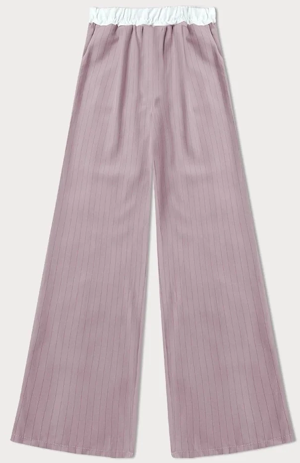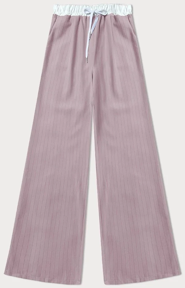 Široké dámské pruhované kalhoty v pudrově růžové barvě (18629)