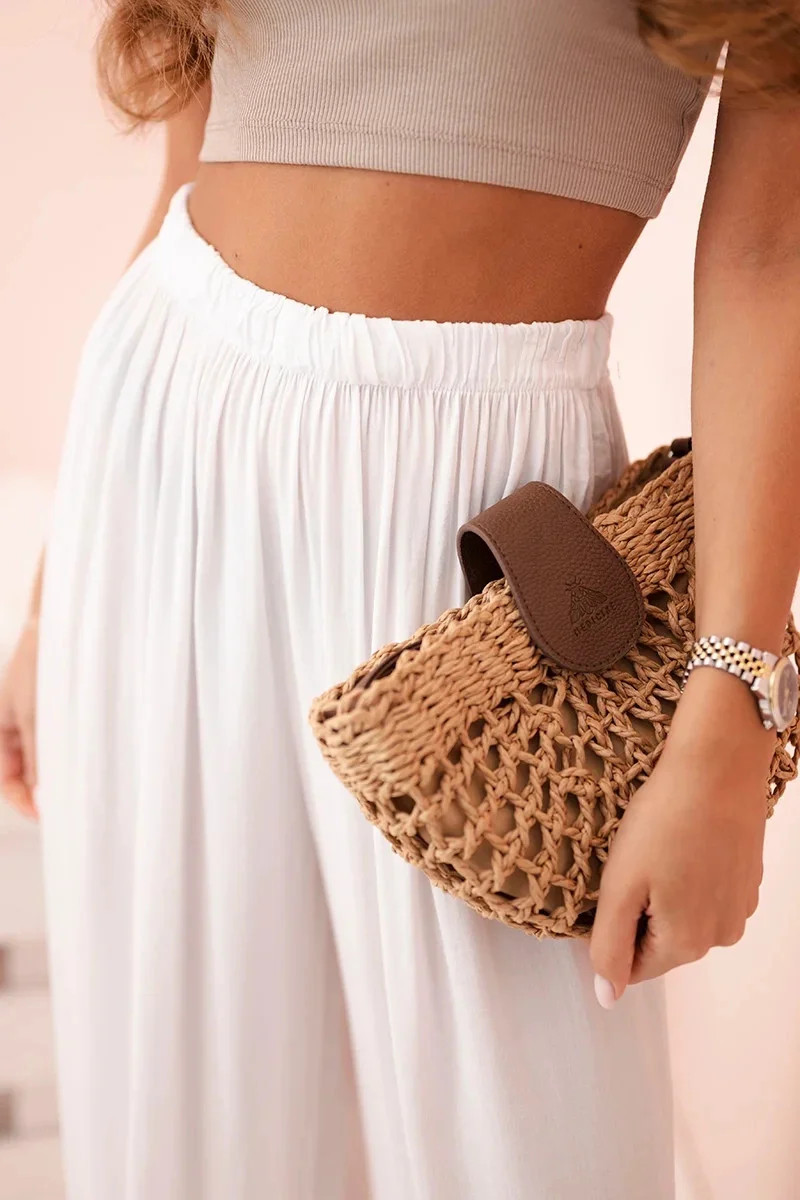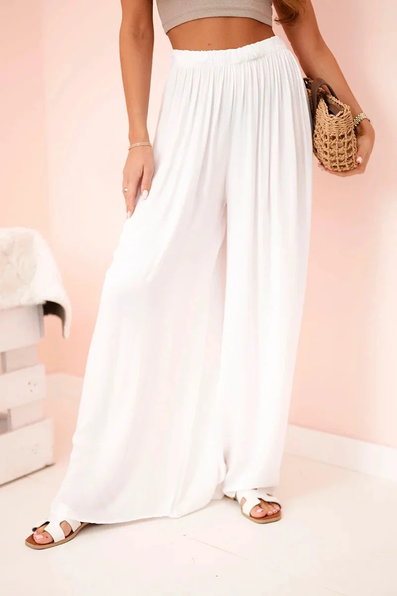 Široké dámské viskózové kalhoty s elastickým pasem bílé