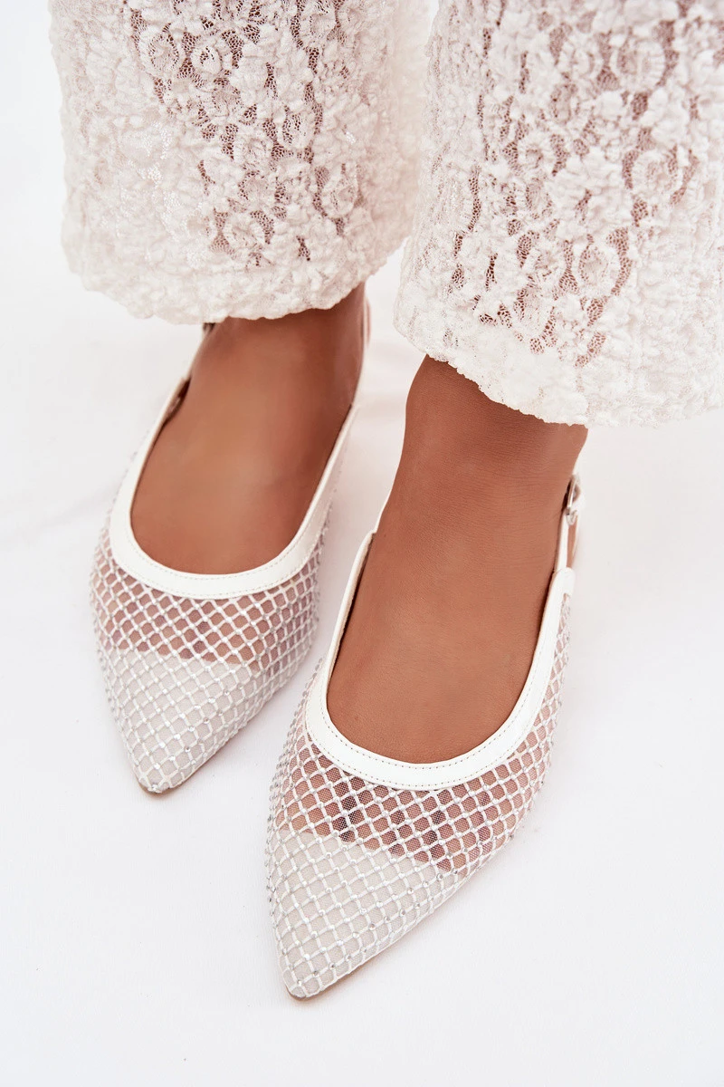 Síťované baleríny s odhalenou patou bílé Pyvona