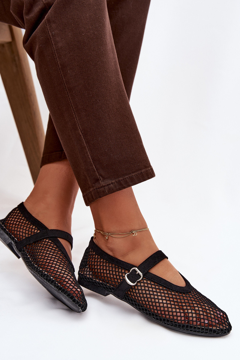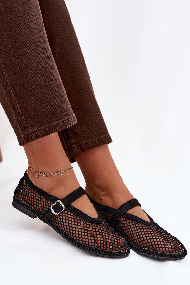 Síťované baleríny s páskem černé Pherina