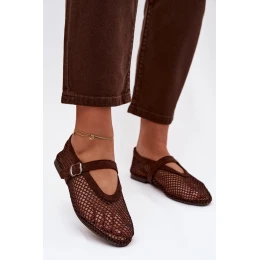 Síťované baleríny s páskem čokoládové model 21919097 - Boto