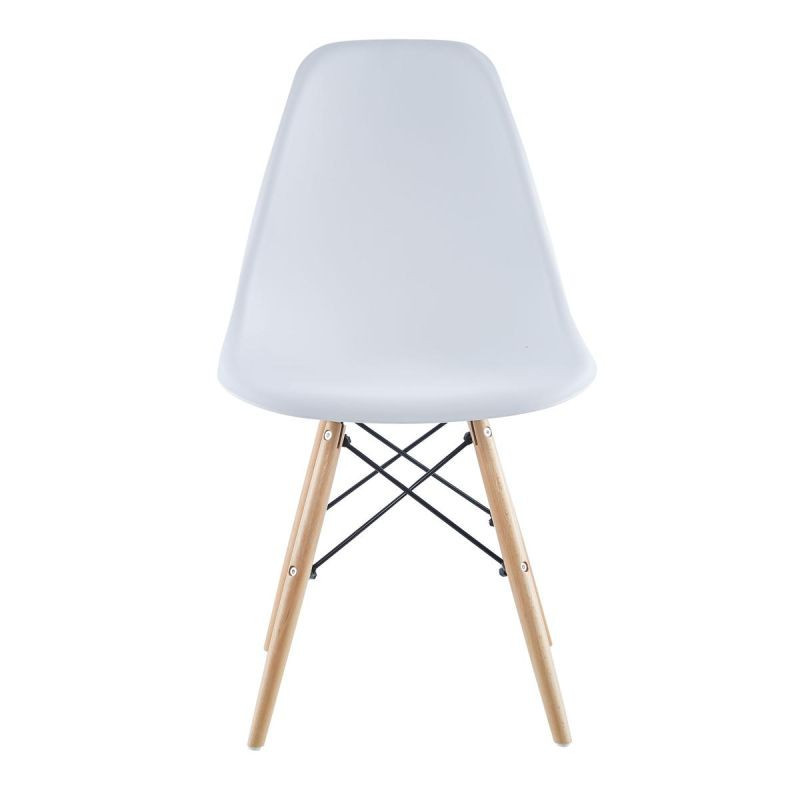 Opływowy kształt siedziska, nadaje mu delikatnego i miękkiego wyrazu. Wygodę siedzenia zapewnia odpowiednie wyprofilowanie. Tworzywo sztuczne o matowym wykończeniu gwarantuje odpowiednią wytrzymałość. 4 drewniane nogi, z rozpiętymi metalowymi prętami, nadają krzesłu lekko industrialny charakter.