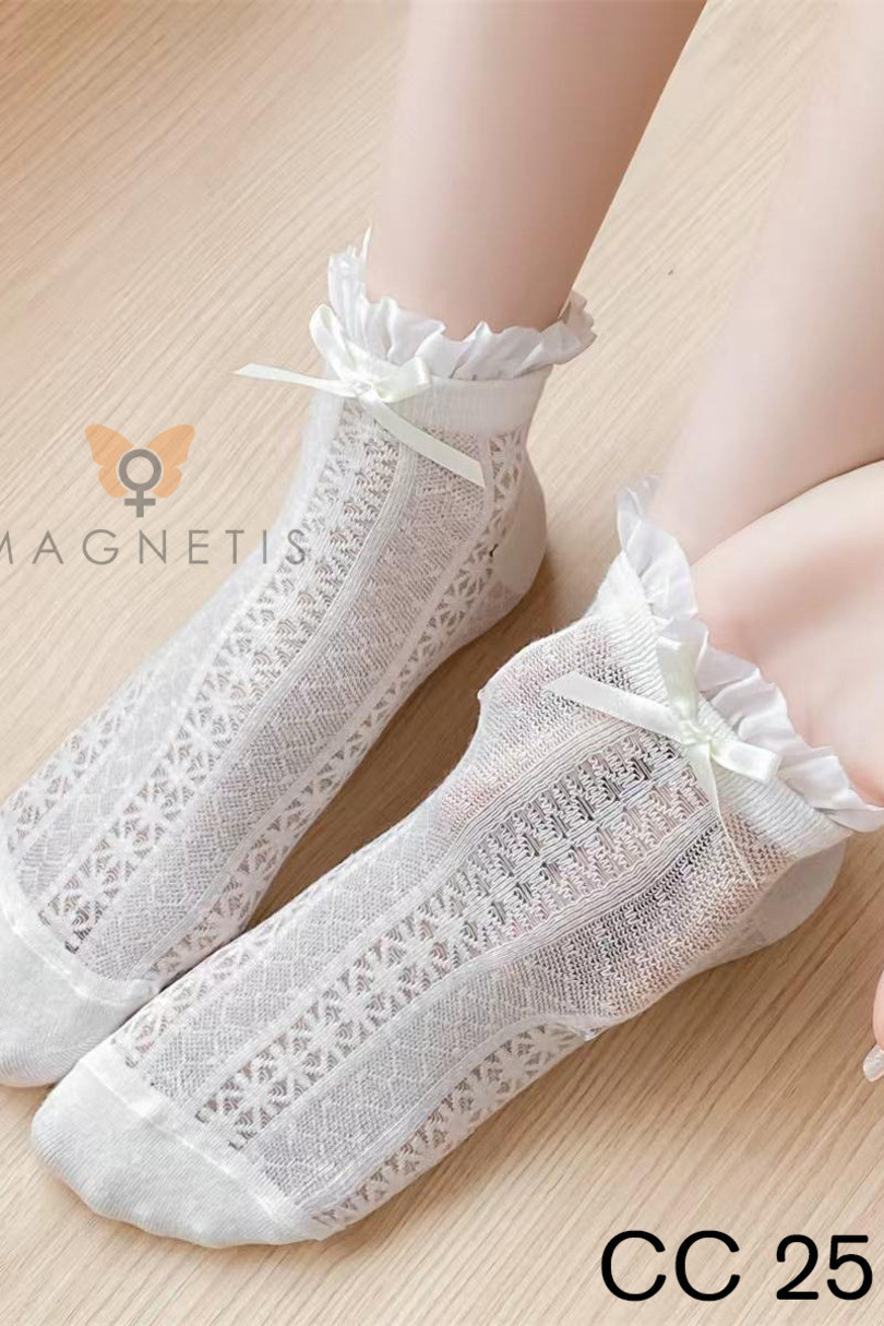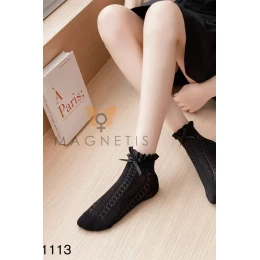 Skarpetki damskie Magnetis CC-251113 z aplikacją to wyjątkowe połączenie elegancji i modnego designu. Model w klasycznej czerni wyróżnia się ażurowymi, dekoracyjnymi wstawkami oraz subtelną kokardką przy wykończeniu, co nadaje całości romantycznego i kobiecego charakteru. To wzorzyste skarpetki damskie, które doskonale podkreślą stylizacje casualowe, wizytowe oraz fashion. Wysoka zawartość bawełny (92%) zapewnia miękkość, przewiewność i komfort noszenia przez cały dzień. Dodatek elastanu (8%) odpowiada za elastyczność i idealne dopasowanie do stopy, dzięki czemu skarpetki nie zsuwają się i zachowują swój kształt nawet po wielokrotnym praniu. Ażurowa struktura nadaje lekkości i sprawia, że model prezentuje się niezwykle stylowo w połączeniu z balerinami, czółenkami czy loafersami. Model CC-251113 marki Magnetis to doskonały wybór dla kobiet, które cenią modne dodatki, wysoką jakość wykonania oraz komfort użytkowania.