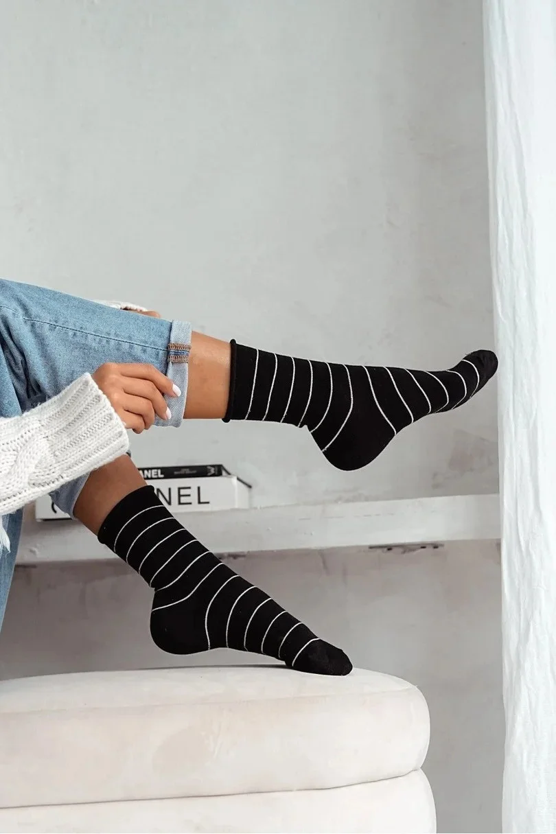 Dámské bavlněné ponožky s jemnými lurexovými proužky.