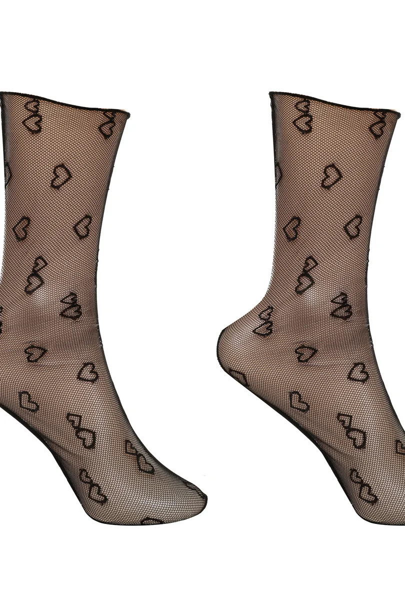 Ponožky jsou vyrobeny z jemné průhledné síťoviny, která jim dodává lehkost a jemný, smyslný vzhled.Srdíčkový vzor je rovnoměrně rozložen po celé ploše ponožek a vytváří hravý a okouzlující motiv..