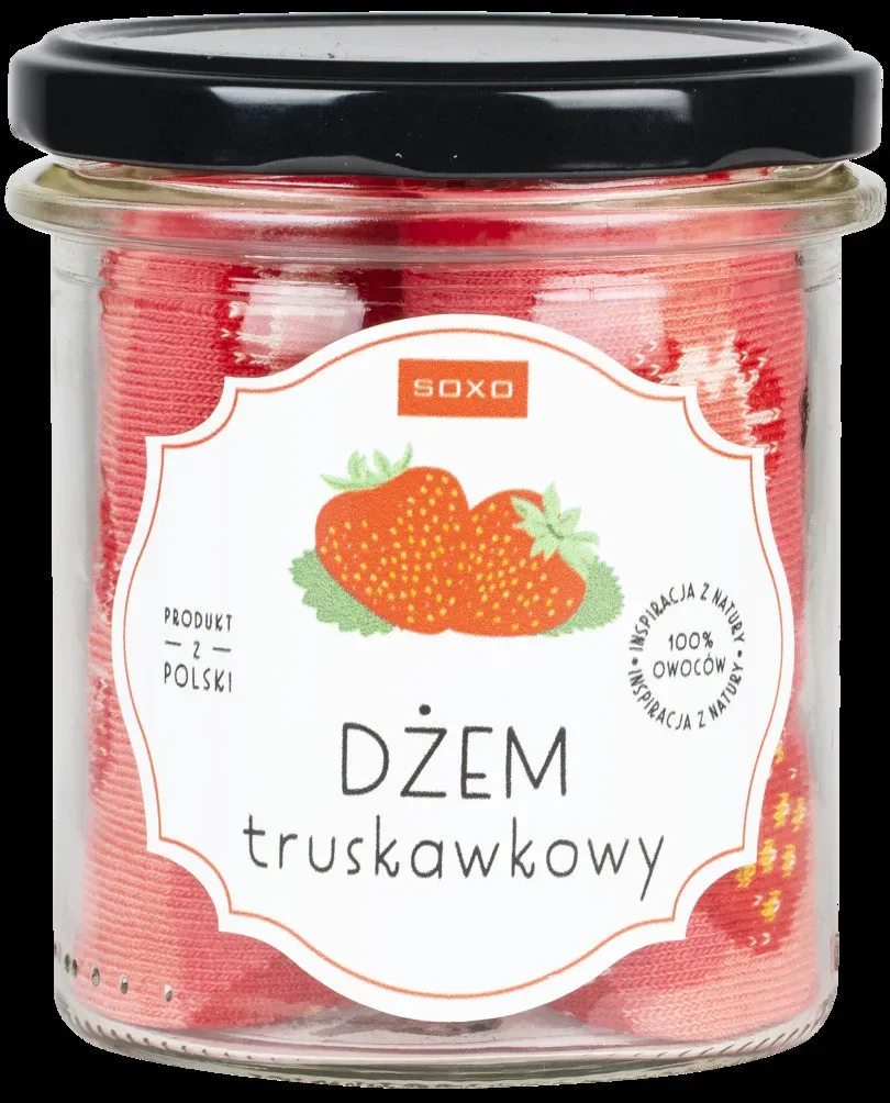 Barevné dámské ponožky z kvalitní bavlny-jahodový džem ve sklenici. Baleno ve skleněné dóze s krásnou etiketou. Ideální dárek!