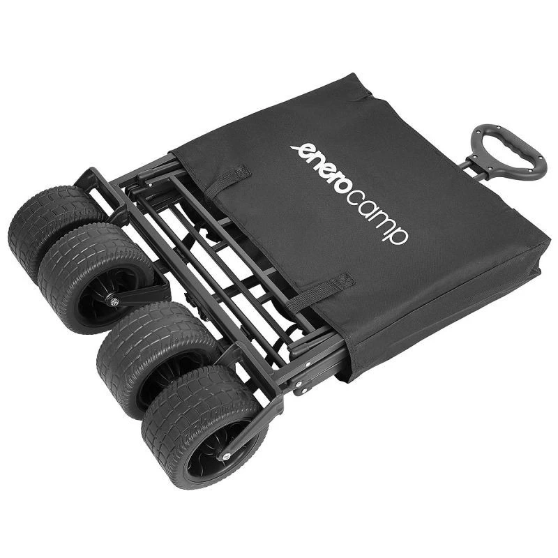 Korzystanie z wózka jest bardzo łatwe i przyjemne, kółka o średnicy 16 cm i szerokości 10 cm pozwolą Ci na pokonanie każdego terenu, czy to będzie plaża, las czy łąka, nawet przy maksymalnym obciążeniu. Największą zaletą wózka jest możliwość złożenia go do niewielkich rozmiarów, co znacznie ułatwia jego transport, możesz zabrać go ze sobą praktycznie wszędzie.