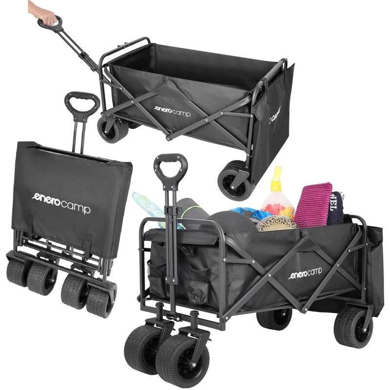 Szukasz poręcznego, składanego lekkiego wózka, aby wygodnie przewieźć rozmaite rzeczy na plażę, nad jezioro na piknik lub na plac zabaw? WÓZEK TURYSTYCZNO PLAŻOWY DELUXE SKŁADANY 90x57x73-96CM Z UCHWYTEM CZARNY cm sprawi, że nie będziesz już dłużej dźwigać parasoli, kocyków, napoi lub jedzenia oraz rozmaitych zabawek nad wodę tylko wygodnie wszystko przewieziesz!