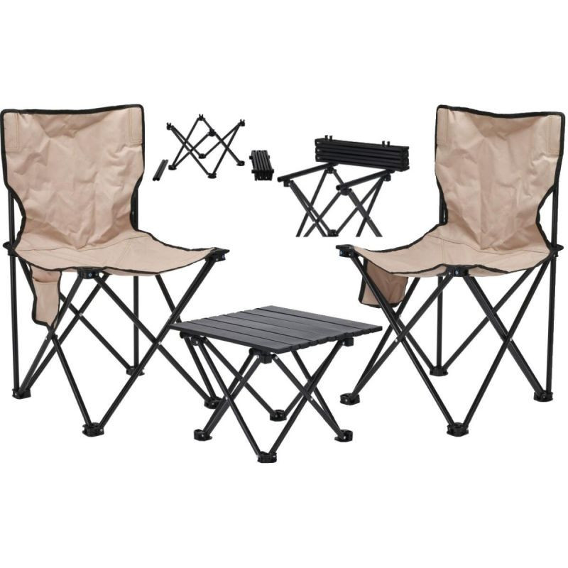 SKLÁDACÍ CESTOVNÍ SET 3 V 1 STŮL A 2 ŽIDLE REDCLIFFS BEIGE