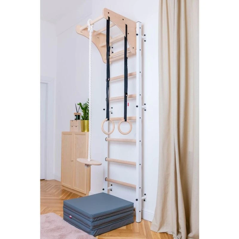 The mattress plays a very important role in protecting children from abrasions and injuries when performing various exercises on the ladder. Its purpose is to ensure safety during exercises, but it can also be used as a seat during children's play.
