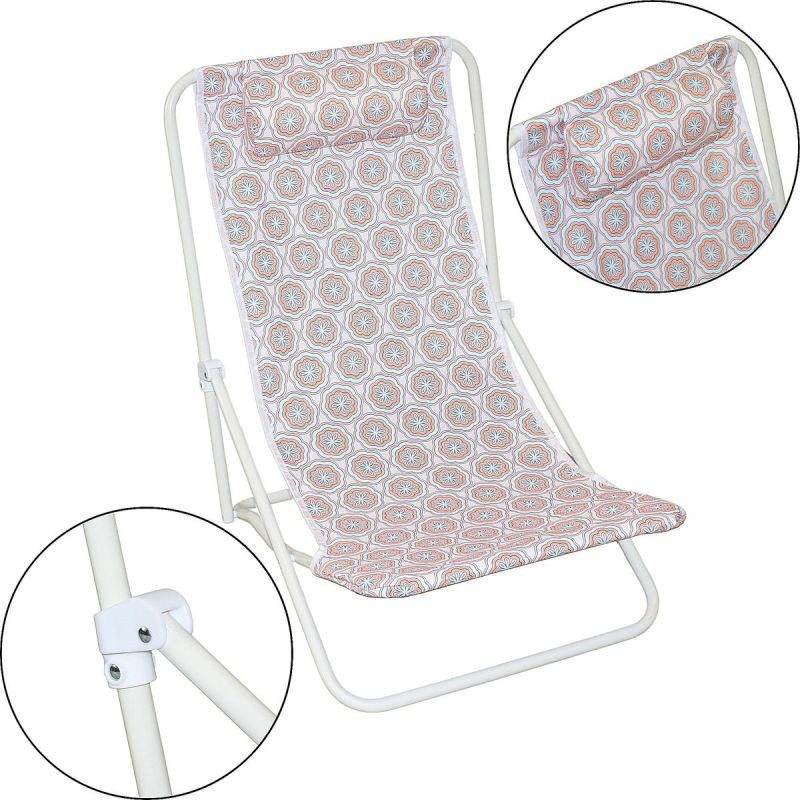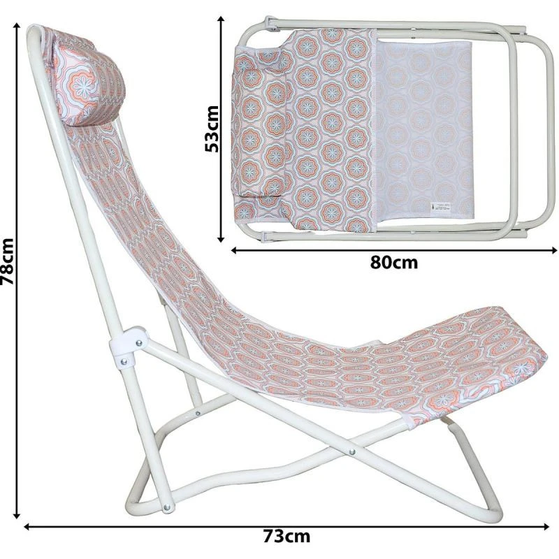 Plážové skládací lehátko s opěrkou hlavy v modré a oranžové barvě je vaší vstupenkou k blaženému odpočinku - na pláži, na zahradě nebo kdekoli jinde, kde se chcete opalovat. Rozložíte ho, posadíte se a... můžete vyrazit!