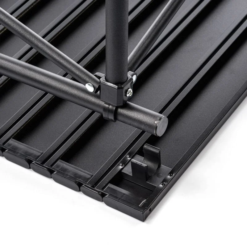 - Snadná montáž - skládací horní deska z hliníkových prken umožňuje rychlou a snadnou montáž bez použití nářadí.
