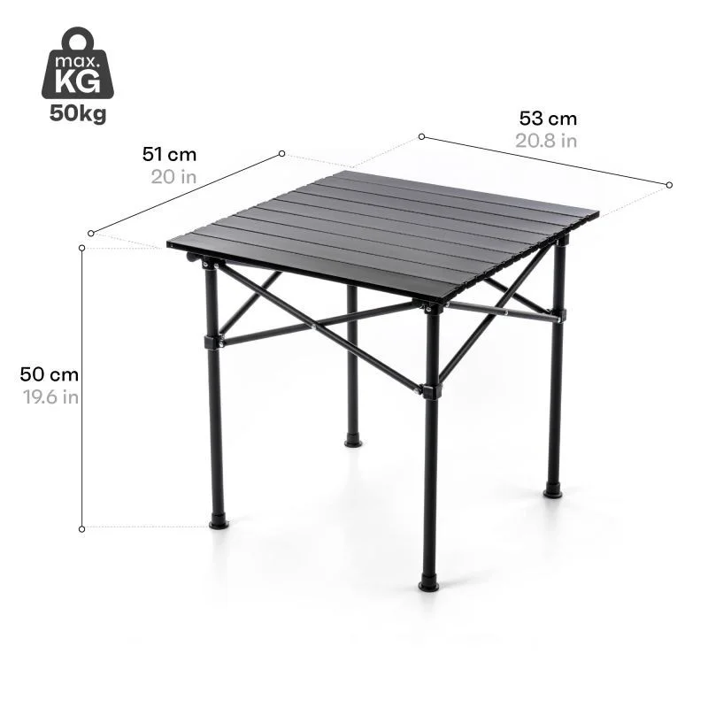 - Kompaktní - ve složeném stavu se stůl vejde do kufru auta, karavanu nebo dokonce do batohu.