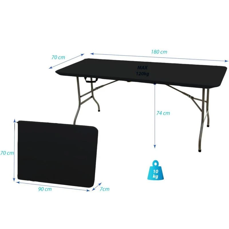 SKLÁDACÍ STŮL V Kufru 180x70x74CM MAX.100KG ČERNÝ