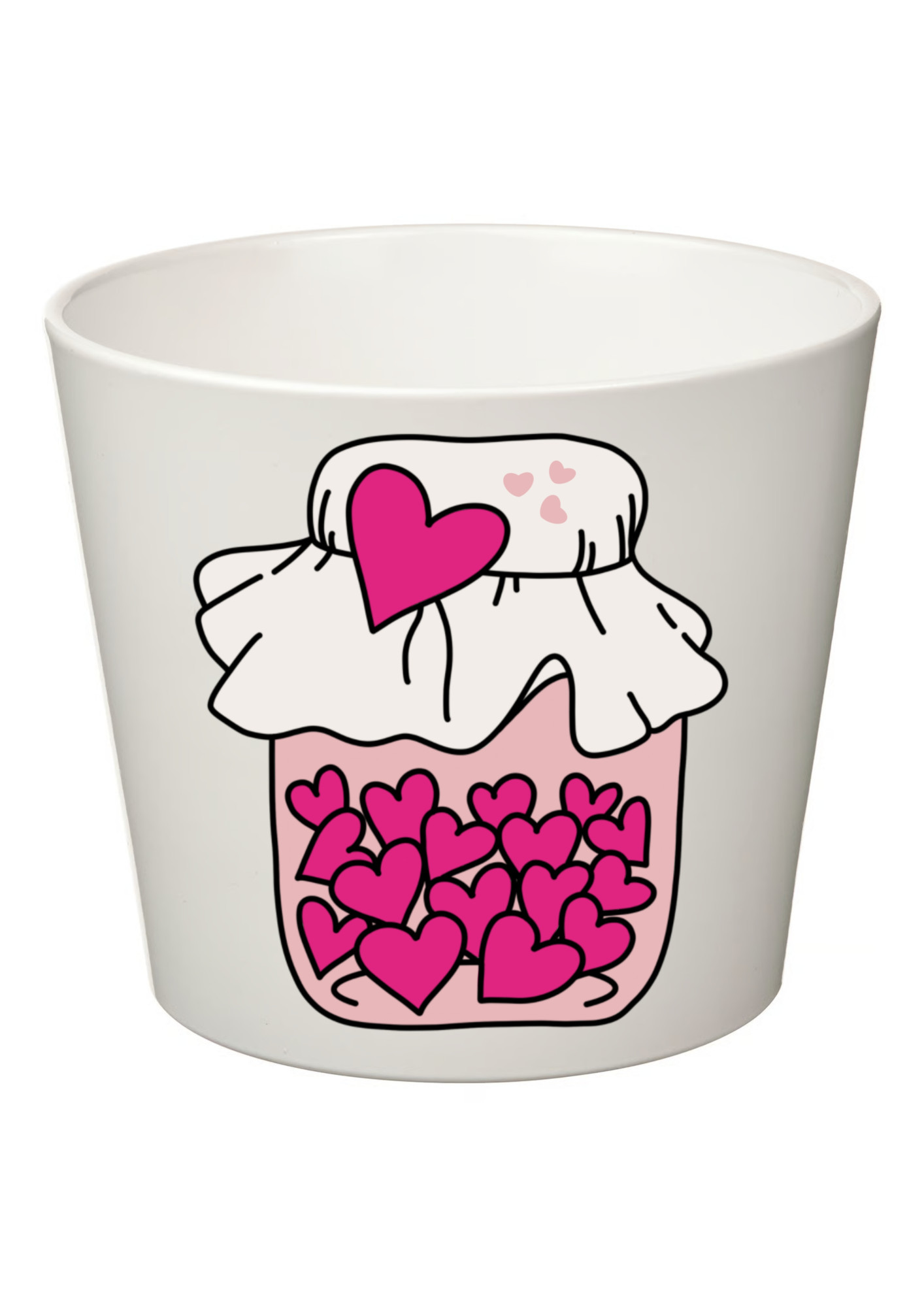 Elegantní bílý květináč s romantickým potiskem sklenice se srdíčky je stylovým doplňkem do každého interiéru. Jednoduchý, ale výrazný motiv symbolizuje lásku, harmonii a pozitivní energii, díky čemuž se skvěle hodí nejen jako dekorace, ale i jako milý dárek pro někoho blízkého.