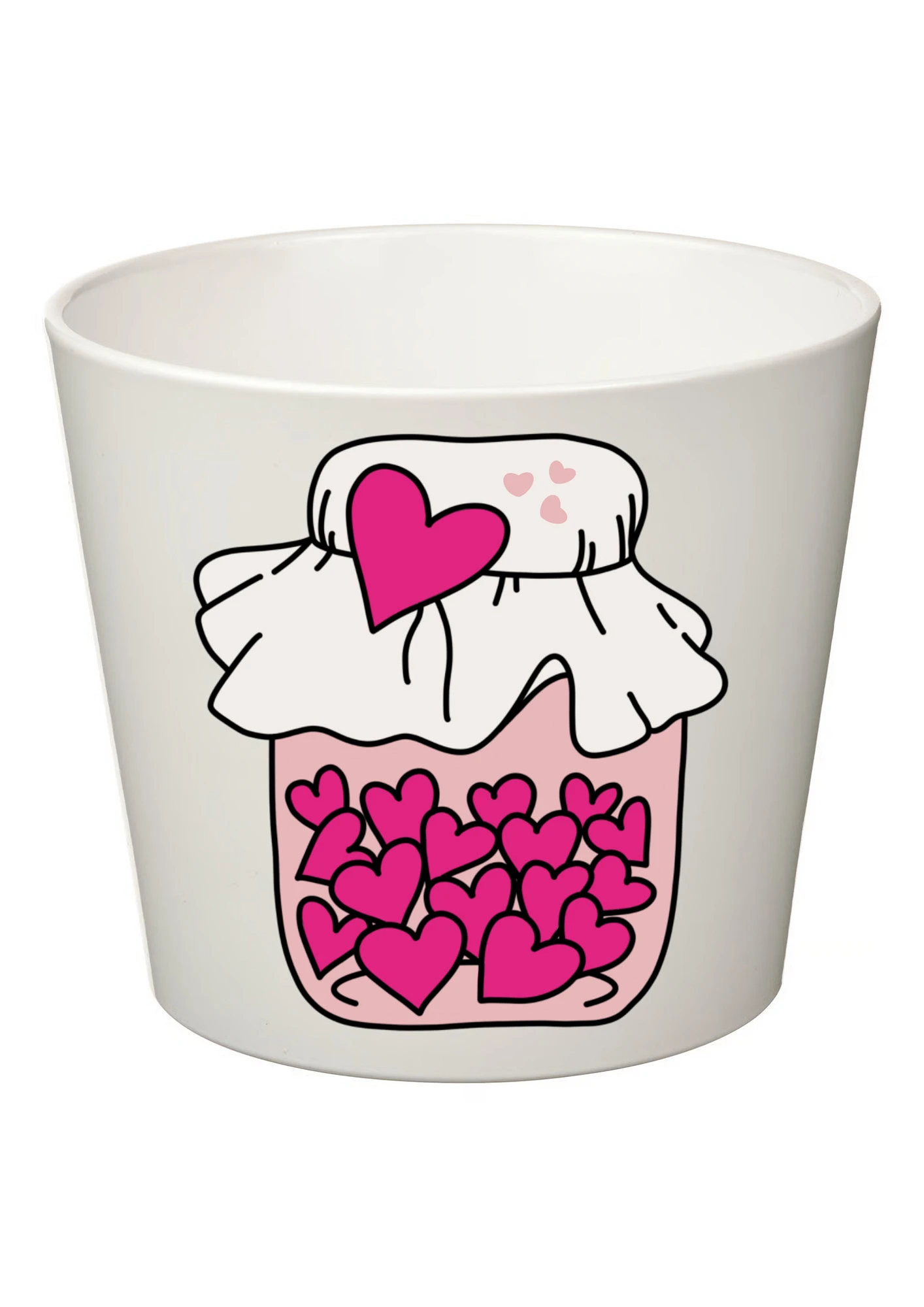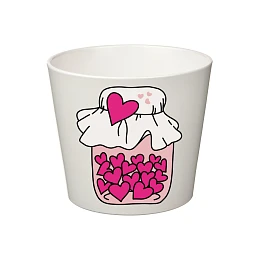 Elegantní bílý květináč s romantickým potiskem sklenice se srdíčky je stylovým doplňkem do každého interiéru. Jednoduchý, ale výrazný motiv symbolizuje lásku, harmonii a pozitivní energii, díky čemuž se skvěle hodí nejen jako dekorace, ale i jako milý dárek pro někoho blízkého.