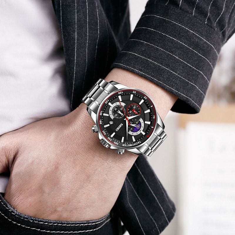 Náramky hodinek Skmei, vyrobené z nejkvalitnější nerezové oceli, v sobě spojují surovou pevnost s poutavou elegancí. Jejich robustní konstrukce je nejen symbolem spolehlivosti, ale také jistotou, že hodinky zůstanou pevně na zápěstí bez ohledu na výzvy dne. Přesné a bezpečné zapínání.