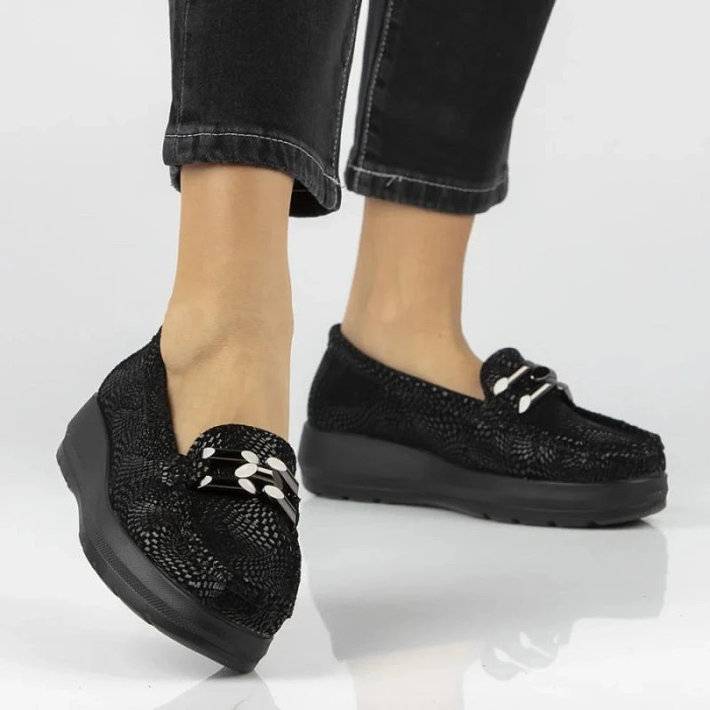 Buty osadzone na wygodnej platformie, ozdobione oryginalną ozdobą wpasują się niemal we wszystkie kobiece stylizacje.