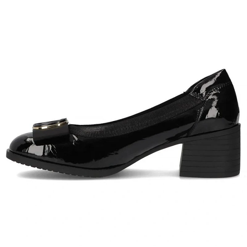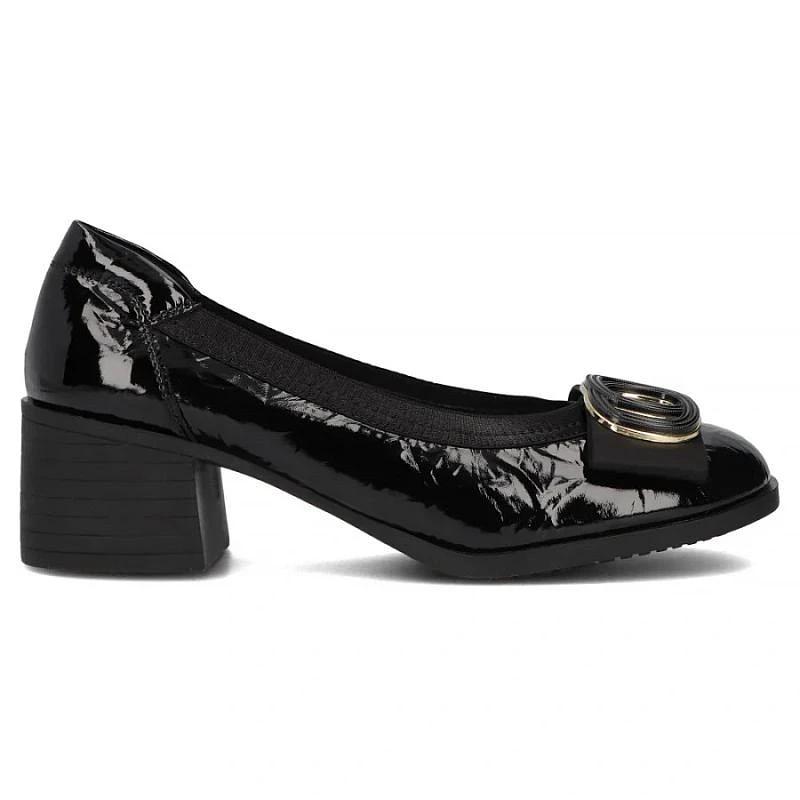 Buty osadzone na wygodnym obcasie, ozdobione oryginalną ozdobą wpasują się niemal we wszystkie kobiece stylizacje.
