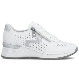 Skórzane sneakersy damskie na białe model 22034192 - Rieker