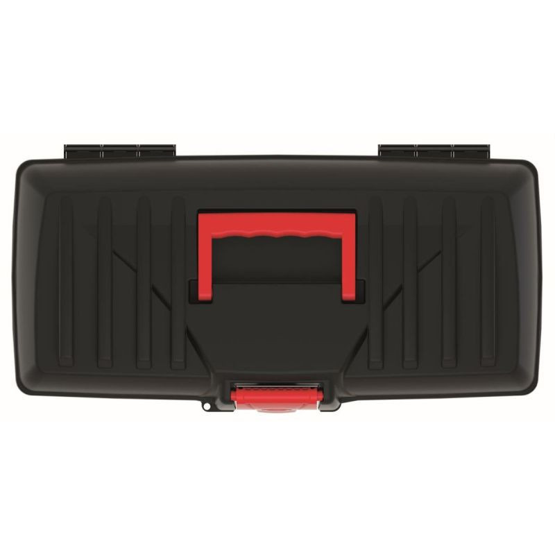 Box má velkou a ergonomickou rukojeť z pevného materiálu ABS, která pojme základní nářadí a drobné předměty do hmotnosti 8,5 kg.